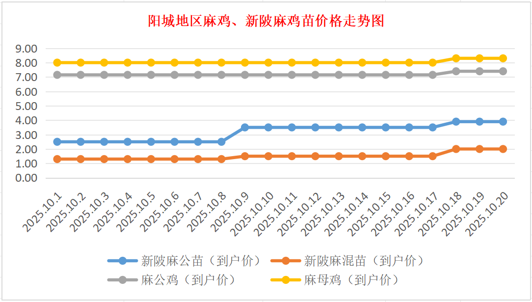 阳城地区麻鸡、新陂麻鸡苗价格走势图(来源:鸡病专业网)