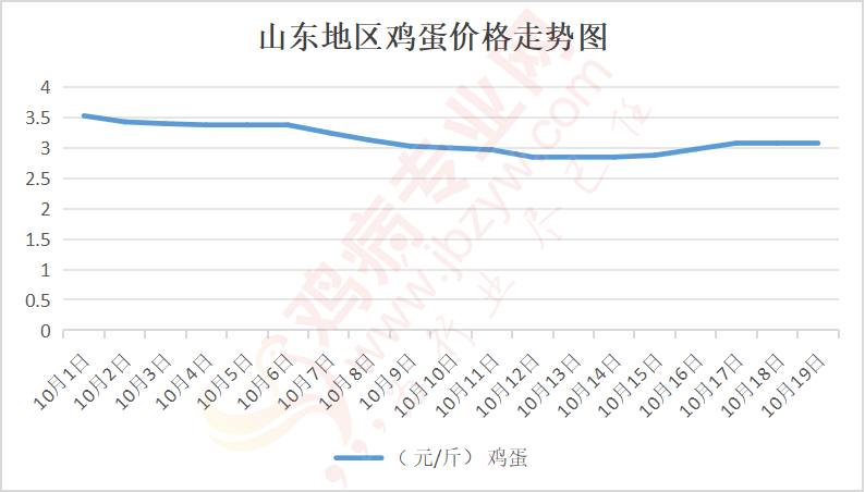 鸡病专业网消息:10月19日,山东地区莱阳鸡蛋3.15元/斤,稳;青岛鸡蛋3.15元/斤,稳;诸城鸡蛋3.1元/斤,稳;安丘鸡蛋3元/斤,稳;昌乐鸡蛋3元/斤,稳;寿光鸡蛋3元/斤,稳;昌邑鸡蛋3元/斤,稳;高密鸡蛋3.1元/斤,稳;青州鸡蛋3元/斤,稳;临朐鸡蛋3元/斤,稳;莱州鸡蛋3.15元/斤,稳;威海鸡蛋3.15元/斤,稳;临沭鸡蛋2.9元/斤,稳;沂水鸡蛋2.9元/斤,稳;沂南鸡蛋2.9元/斤,稳;莒南鸡蛋2.9元/斤,稳;兰陵县鸡蛋2.9元/斤,稳;日照鸡蛋2.9元/斤,稳;莒县鸡蛋2.9元/斤,稳;日照辛萁商贸鸡蛋2.9元/斤,稳;泗水鸡蛋价格87元/30斤,稳;济宁、汶上鸡蛋价格87元/30斤,稳;梁山、东平红蛋价格87元/30斤,稳;枣庄滕州地区鸡蛋混码主流到户89元/30斤,稳;泰安地区新泰鸡蛋价格87元/30斤,稳;菏泽地区曹县主流到户87元/30斤,稳;成武鸡蛋价格87元/30斤,稳;单县到户87元/30斤,稳;聊城莘县85元/30斤,稳。