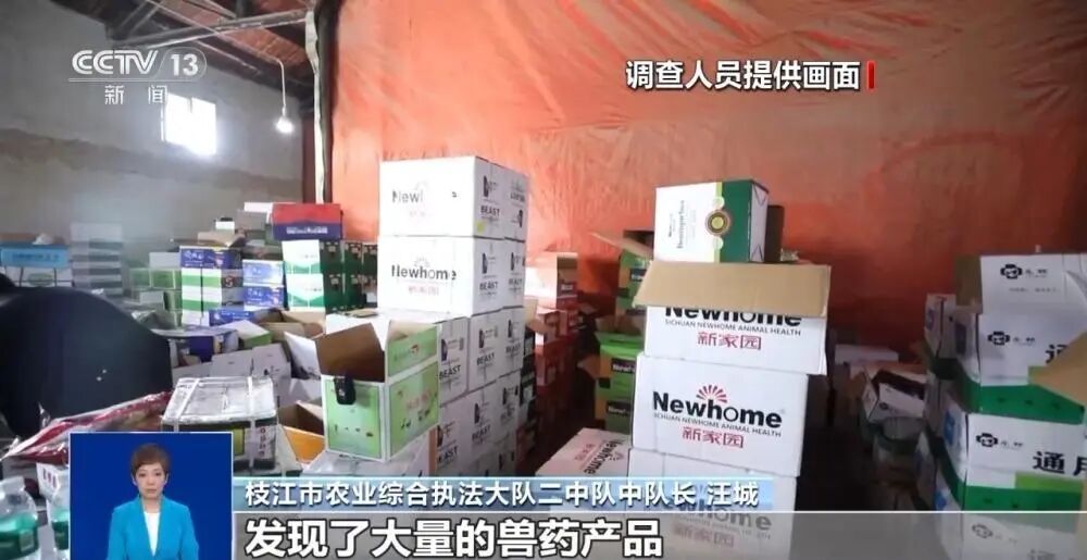 枝江市农业综合执法大队二中队中队长 汪城:通过我们3天的调查发现,该场所内存放着大量的兽药产品。后面我们通过查询,发现这个地方并没有办理兽药经营许可证。因为数量巨大,所以我们将这个情况通报至枝江市公安局,成立了联合调查小组进行了立案调查。