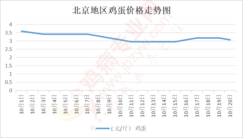 鸡病专业网消息:10月20日,北京大洋路鸡蛋主流批发价格135-136元/44斤,落,到货3台偏少,成交灵活,走货一般;回龙观鸡蛋135元/44斤,落;顺义石门鸡蛋135元/44斤,落。