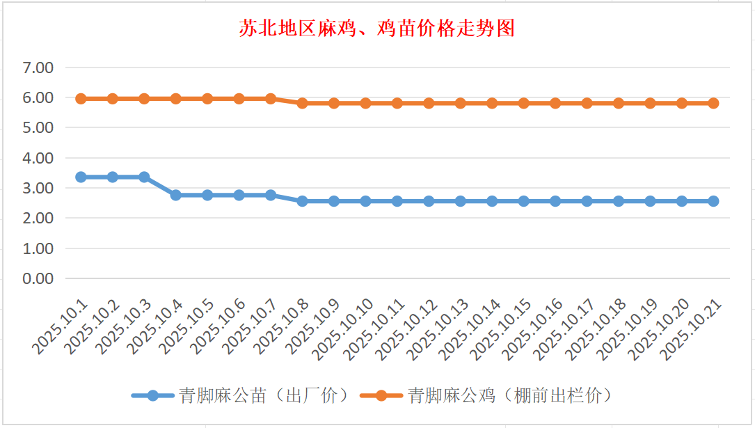 苏北地区麻鸡、鸡苗价格走势图(图源:鸡病专业网)
