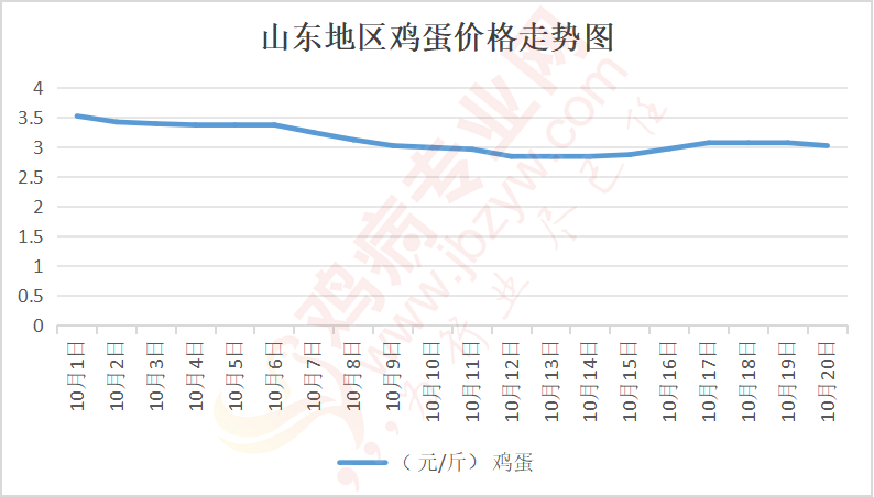 鸡病专业网消息:10月20日,山东地区莱阳鸡蛋3.1元/斤,落;青岛鸡蛋3.1元/斤,落;诸城鸡蛋3元/斤,落;安丘鸡蛋2.9元/斤,落;昌乐鸡蛋2.9元/斤,落;寿光鸡蛋2.9元/斤,落;昌邑鸡蛋2.9元/斤,落;高密鸡蛋3元/斤,落;青州鸡蛋2.9元/斤,落;临朐鸡蛋2.9元/斤,落;莱州鸡蛋3.1元/斤,落;威海鸡蛋3.1元/斤,落;临沭鸡蛋2.85元/斤,落;沂水鸡蛋2.85元/斤,落;沂南鸡蛋2.85元/斤,落;莒南鸡蛋2.85元/斤,落;兰陵县鸡蛋2.85元/斤,落;日照鸡蛋2.85元/斤,落;莒县鸡蛋2.85元/斤,落;日照辛萁商贸鸡蛋2.85元/斤,落;泗水鸡蛋价格84元/30斤,落;济宁、汶上鸡蛋价格84元/30斤,落;梁山、东平红蛋价格84元/30斤,落;枣庄滕州地区鸡蛋混码主流到户86元/30斤,落;泰安地区新泰鸡蛋价格84元/30斤,落;菏泽地区曹县主流到户84元/30斤,落;成武鸡蛋价格84元/30斤,落;单县到户84元/30斤,落;聊城莘县82元/30斤,落。