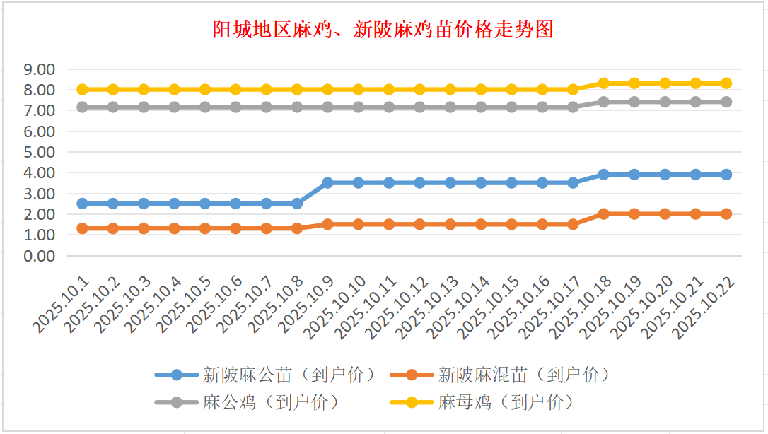 阳城地区麻鸡、新陂麻鸡苗价格走势图(来源:鸡病专业网)