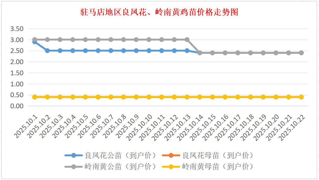 10月22日驻马店地区良凤花、岭南黄鸡苗价格行情