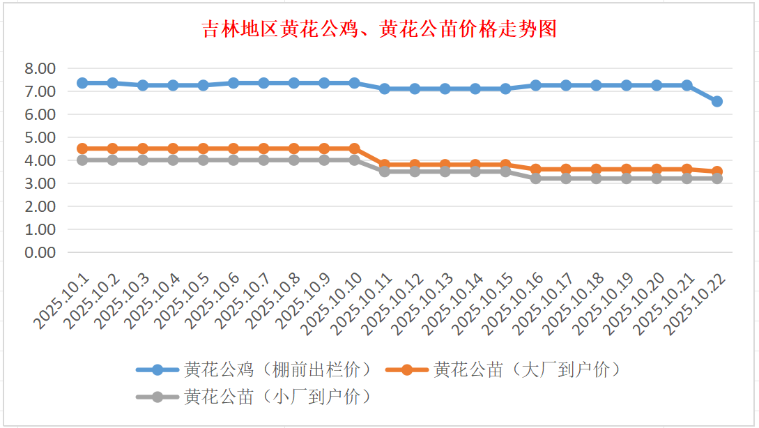 黄花公苗:大厂到户价3.50元/羽,落;小厂到户价3.20元/羽,稳。