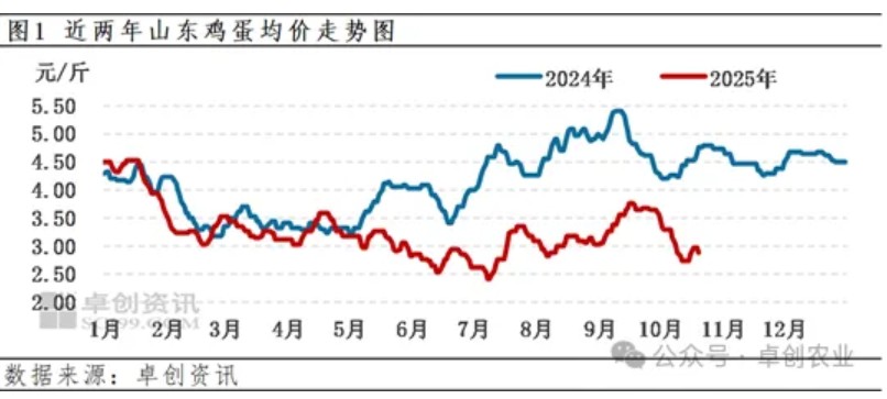 【导语】10月份山东鸡蛋市场需求减少略快,加剧供需矛盾,鸡蛋价格再次跌至成本线之下。短期内去产能速度偏慢,供需矛盾暂时难以缓解,鸡蛋价格或维持低位。