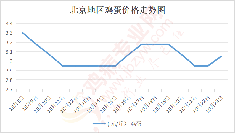 鸡病专业网消息:10月23日,北京大洋路鸡蛋主流批发价格134-135元/44斤,涨,到货6台正常,成交灵活,走货一般;回龙观鸡蛋134元/44斤,涨;顺义石门鸡蛋134元/44斤,涨。