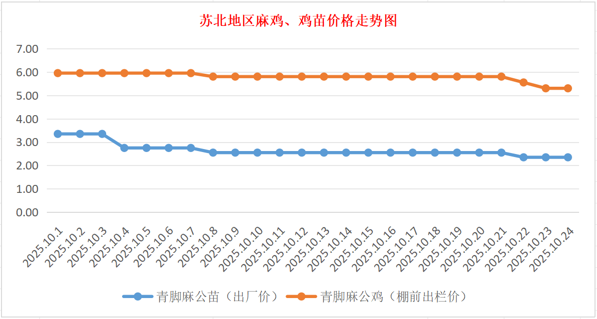 苏北地区麻鸡、鸡苗价格走势图(图源:鸡病专业网)