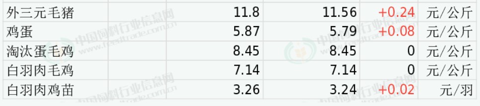 今日鸡蛋价格上涨。鸡蛋市场供应整体充裕,终端消费未见明显好转,贸易商采购趋谨慎,各环节库存压力仍存。虽然部分地区鸡蛋价格出现上涨,但整体市场需求并没有大幅提升,难以支撑价格持续大幅上涨。养殖行业持续亏损,养户对后市行情持悲观预期,预计短期蛋价稳定后再度走弱的可能性大于反弹。今日主产区山东鸡蛋均价5.64元/公斤,较昨日价格上涨0.06;河北鸡蛋均价5.51元/公斤,较昨日价格上涨0.20;广东鸡蛋均价6.20元/公斤,与昨日价格持平;北京鸡蛋均价6.14元/公斤,较昨日价格上涨0.20。