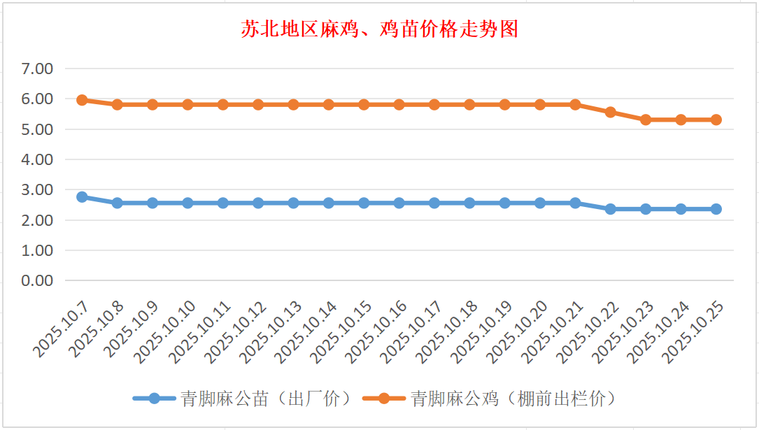 苏北地区麻鸡、鸡苗价格走势图(图源:鸡病专业网)