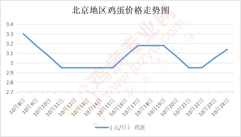 鸡病专业网消息:10月24日,北京大洋路鸡蛋主流批发价格138-139元/44斤,涨,到货6台正常,成交灵活,走货一般;回龙观鸡蛋138元/44斤,涨;顺义石门鸡蛋138元/44斤,涨。