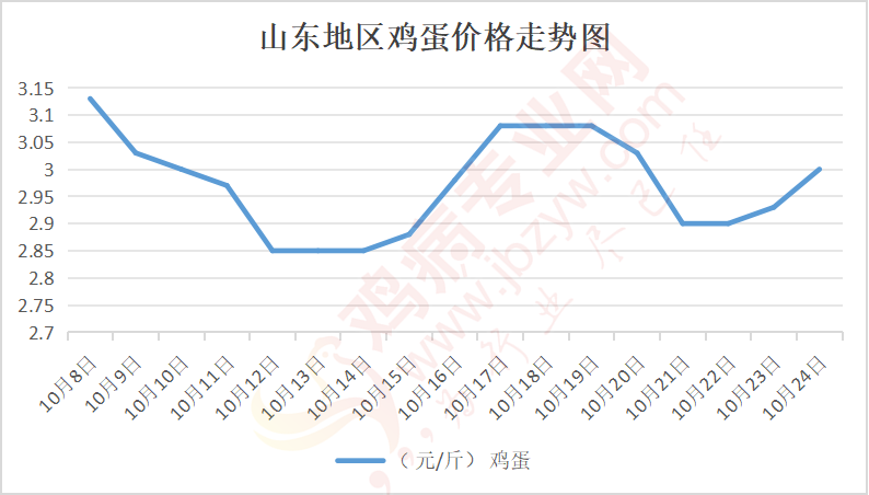 鸡病专业网消息:10月24日,山东地区莱阳鸡蛋3.1元/斤,涨;青岛鸡蛋3.1元/斤,涨;诸城鸡蛋3.1元/斤,涨;安丘鸡蛋2.9元/斤,涨;昌乐鸡蛋2.9元/斤,涨;寿光鸡蛋2.9元/斤,涨;昌邑鸡蛋2.9元/斤,涨;高密鸡蛋3.1元/斤,涨;青州鸡蛋2.9元/斤,涨;临朐鸡蛋2.9元/斤,涨;莱州鸡蛋3.1元/斤,涨;威海鸡蛋3.1元/斤,涨;临沭鸡蛋2.9元/斤,涨;沂水鸡蛋2.9元/斤,涨;沂南鸡蛋2.9元/斤,涨;莒南鸡蛋2.9元/斤,涨;兰陵县鸡蛋2.9元/斤,涨;日照鸡蛋2.9元/斤,涨;莒县鸡蛋2.9元/斤,涨;日照辛萁商贸鸡蛋2.9元/斤,涨;泗水鸡蛋价格84元/30斤,涨;济宁、汶上鸡蛋价格84元/30斤,涨;梁山、东平红蛋价格84元/30斤,涨;枣庄滕州地区鸡蛋混码主流到户86元/30斤,涨;泰安地区新泰鸡蛋价格84元/30斤,涨;菏泽地区曹县主流到户84元/30斤,涨;成武鸡蛋价格84元/30斤,涨;单县到户84元/30斤,涨;聊城莘县83元/30斤,涨。