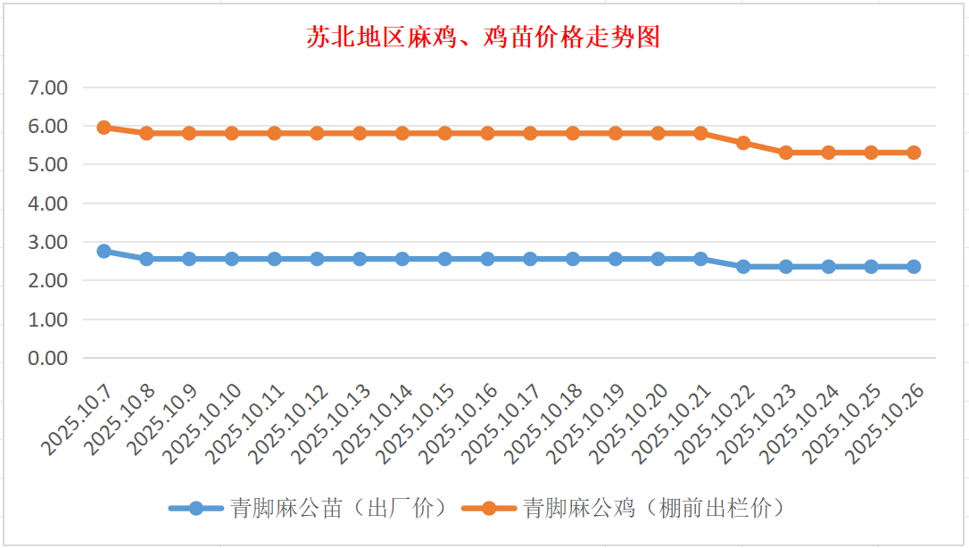 苏北地区麻鸡、鸡苗价格走势图(图源:鸡病专业网)