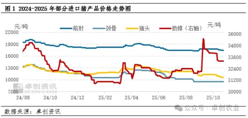 1. 2025年10月份进口猪肉价格呈缓跌走势