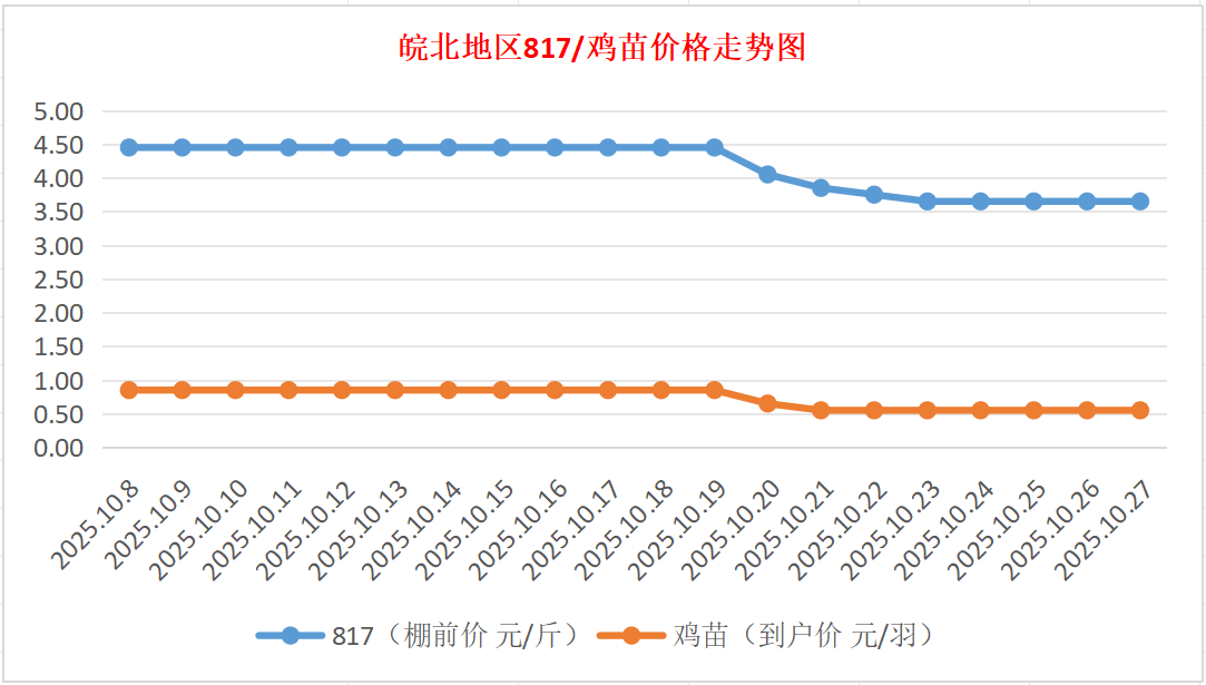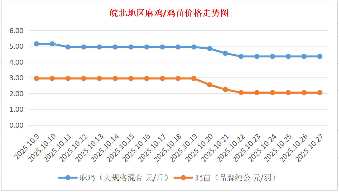 鸡病专业网独家信息:2025年10月27日皖北地区817-麻鸡行情最新走势