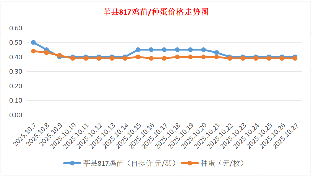 817鸡苗(混合):报价自提0.40元/羽。(稳)