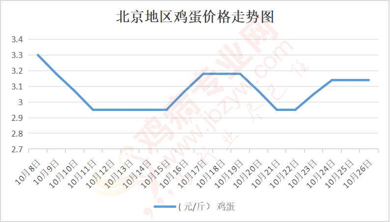 鸡病专业网消息:10月26日,北京大洋路鸡蛋主流批发价格138-139元/44斤,稳,到货6台正常,成交灵活,走货一般;回龙观鸡蛋138元/44斤,稳;顺义石门鸡蛋138元/44斤,稳。