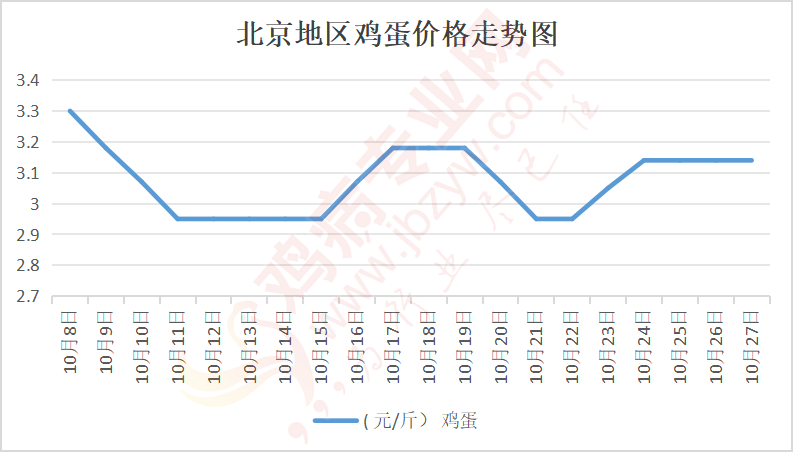 鸡病专业网消息:10月27日,北京大洋路鸡蛋主流批发价格138-139元/44斤,稳,到货2台偏少,成交灵活,走货正常稍快;回龙观鸡蛋138元/44斤,稳;顺义石门鸡蛋138元/44斤,稳。