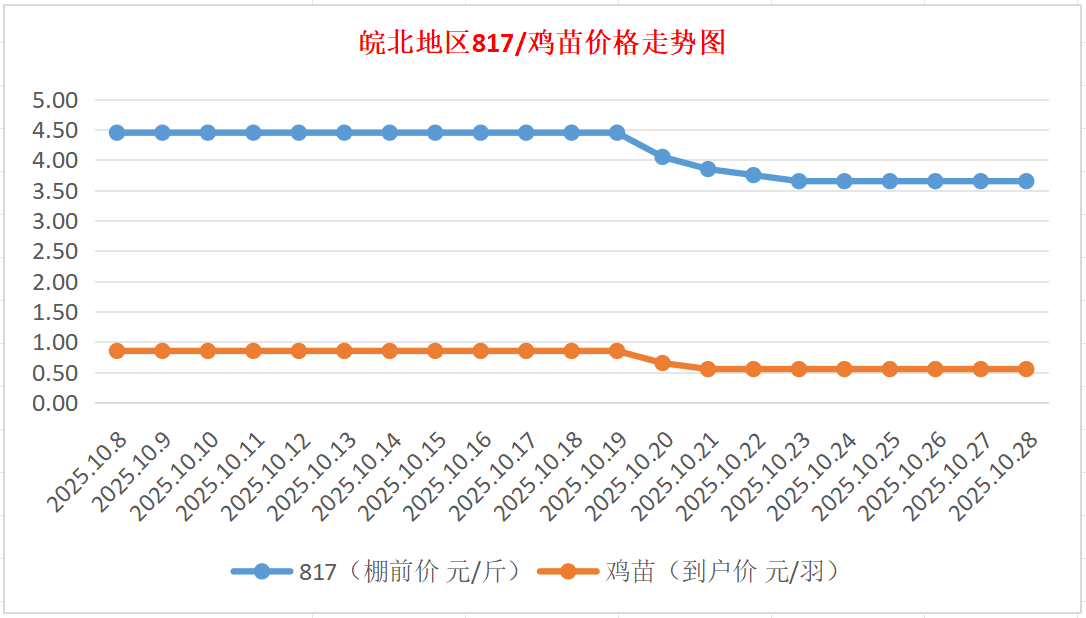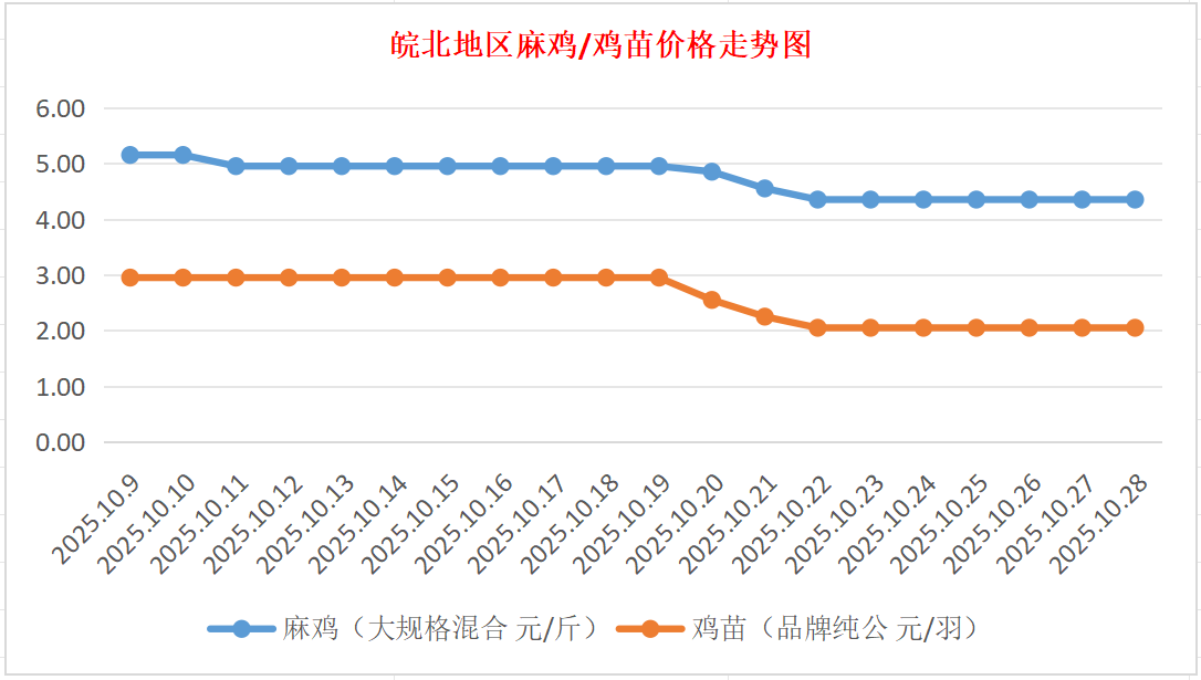 鸡病专业网独家信息:2025年10月28日皖北地区817-麻鸡行情最新走势