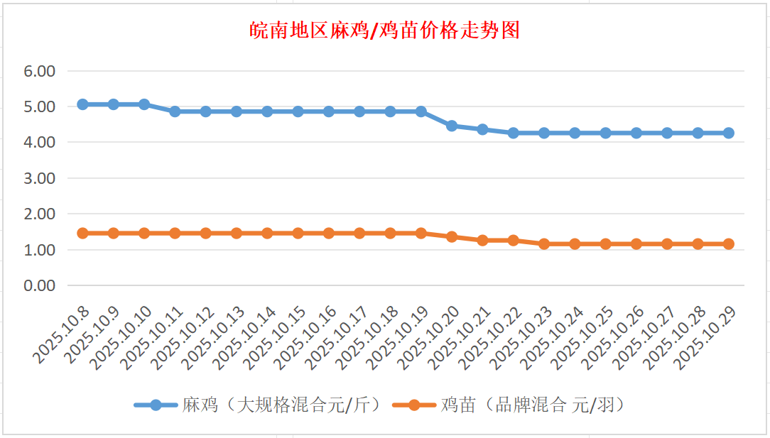 鸡病专业网独家信息:2025年10月29日皖南地区817-麻鸡行情最新走势