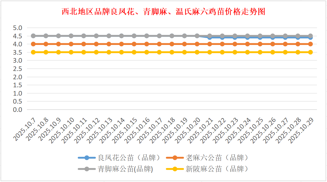 品牌青脚麻公苗(多品种快大型):价格稳定,到户价4.50元/羽,稳。