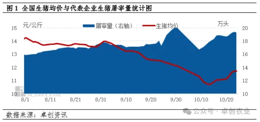 从数据了解,9月份,受多元主体集中出栏,而需求利好增幅有限,主流样本猪企出栏计划完成仅有95.3%,10月出栏计划增加,部分产能滞后出栏,机构调研10月集团猪企出栏环比增加5.48%!10月初,集团猪企出栏情绪偏强,多元主体中秋前认卖情绪较高,加剧了猪价下行的走势,而节后需求惯性回落,猪价进一步下挫,国内标猪触底11元/公斤!
