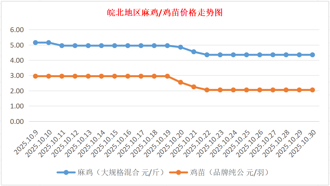 鸡病专业网独家信息:2025年10月30日皖北地区817-麻鸡行情最新走势