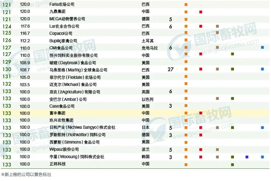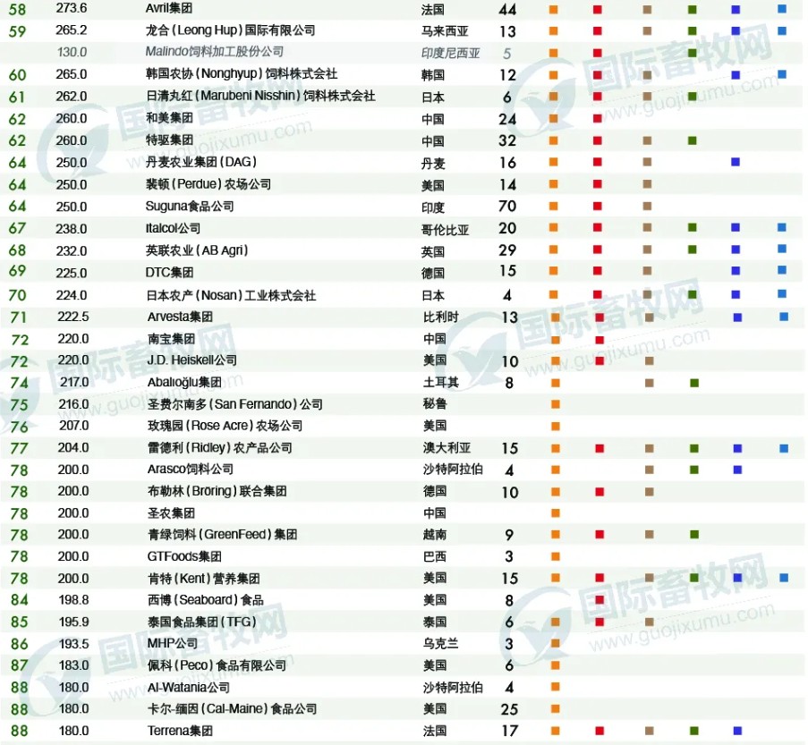 全球146家饲料生产商榜上有名业也从2023年的第60位(260万吨)稳步前进,到2024年成功升至第34位,产量达到380万吨。