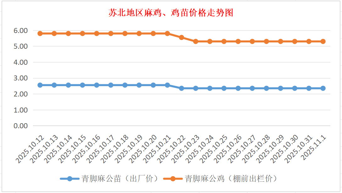 苏北地区麻鸡、鸡苗价格走势图(图源:鸡病专业网)