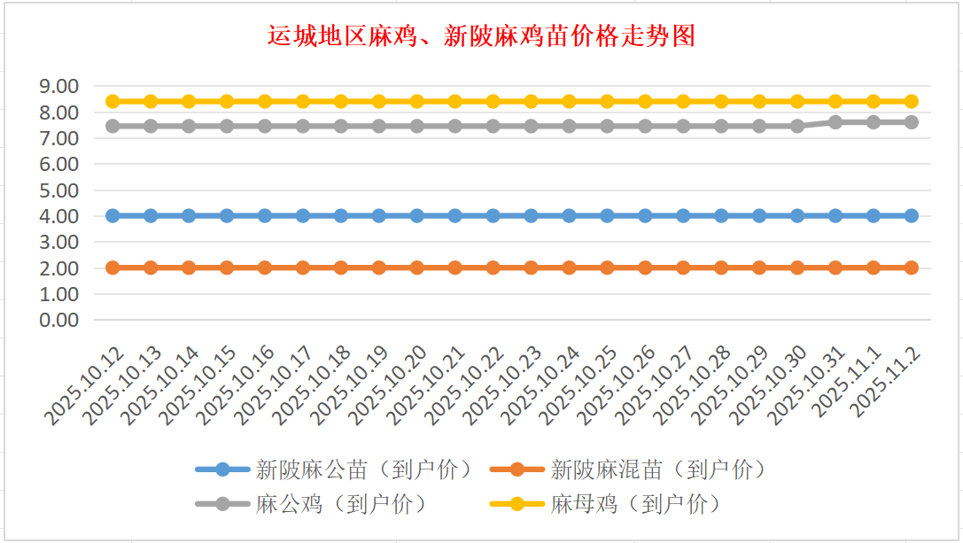 运城地区麻鸡、新陂麻鸡苗价格走势图(来源:鸡病专业网)