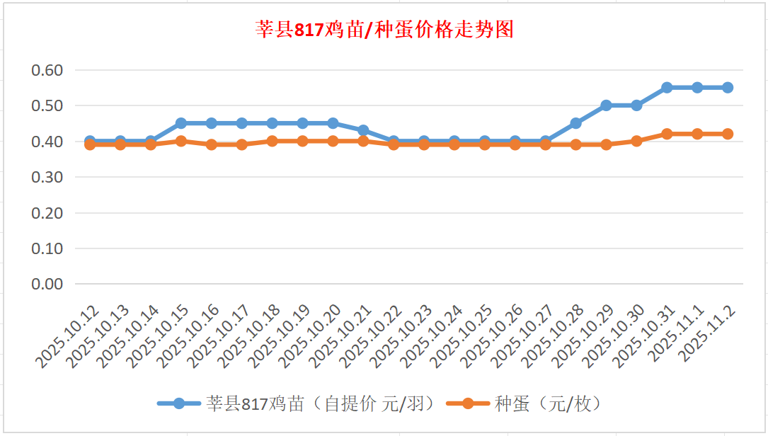 种蛋:昨日种蛋0.41-0.42元/枚。