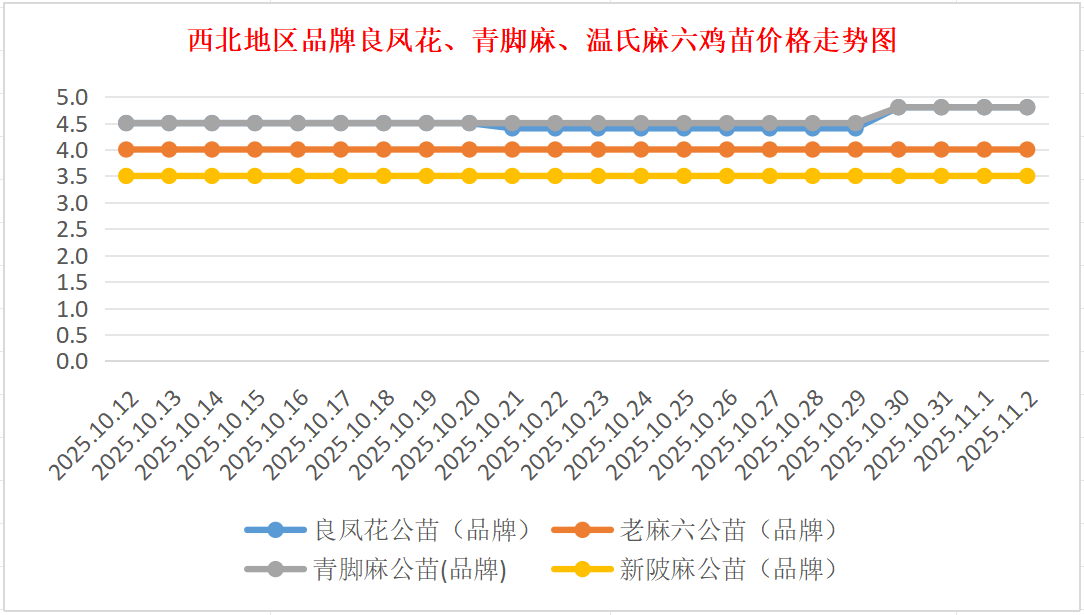 西北地区麻鸡苗价格走势图(来源:鸡病专业网)