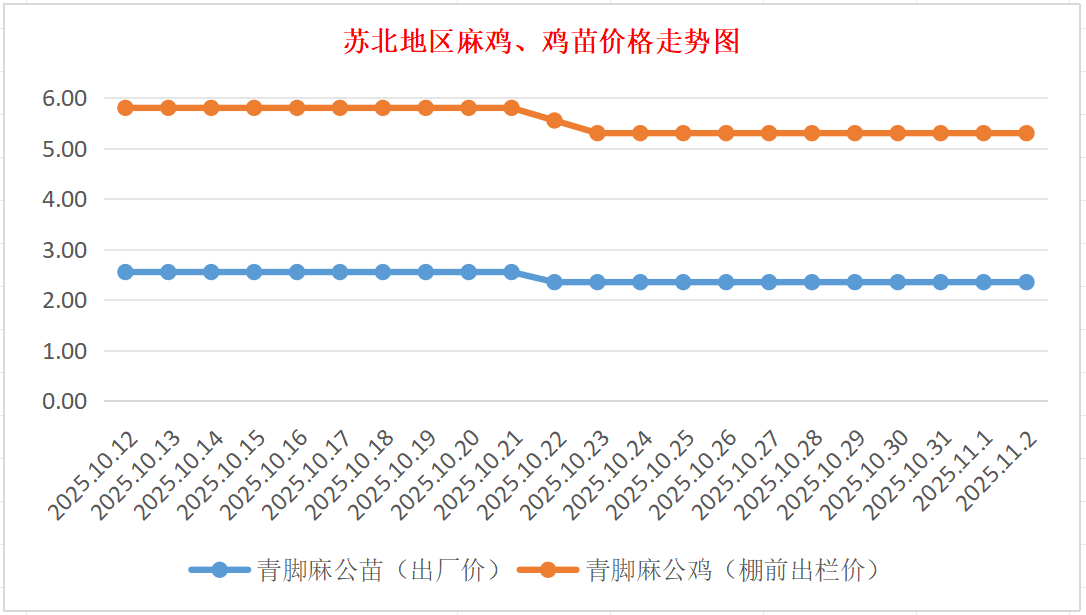 苏北地区麻鸡、鸡苗价格走势图(图源:鸡病专业网)