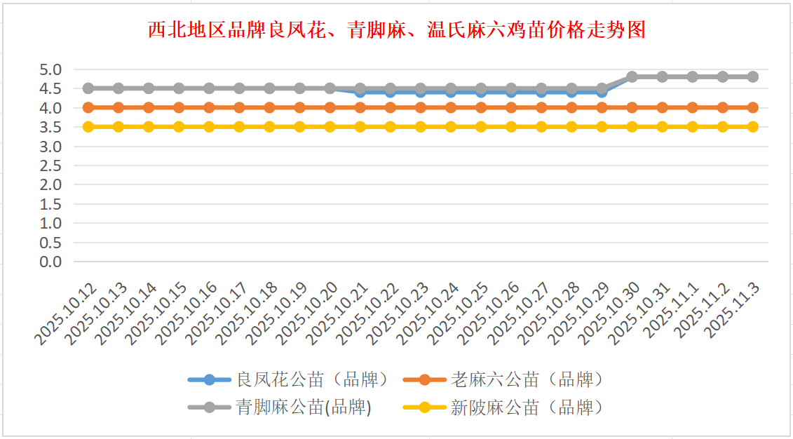 西北地区麻鸡苗价格走势图(来源:鸡病专业网)