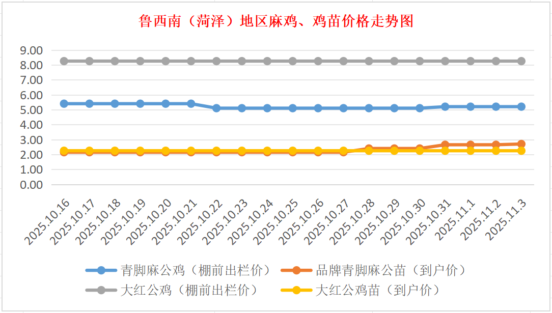 菏泽地区麻鸡、鸡苗价格走势图(来源:鸡病专业网)