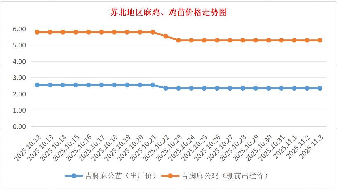 苏北地区麻鸡、鸡苗价格走势图(图源:鸡病专业网)