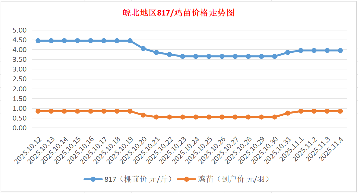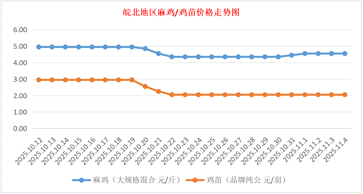 鸡病专业网独家信息:2025年11月4日皖北地区817-麻鸡行情最新走势