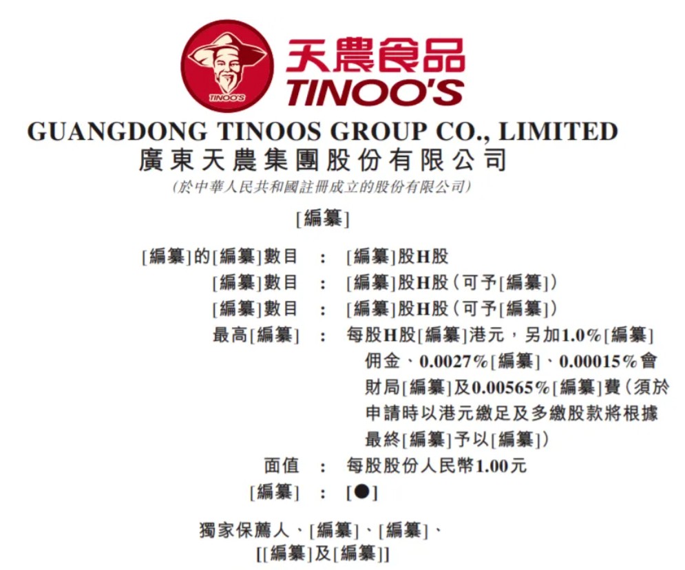 10月31日,天农食品已向港交所提交上市申请,目标是在主板上市。招商证券国际为其独家保荐人。