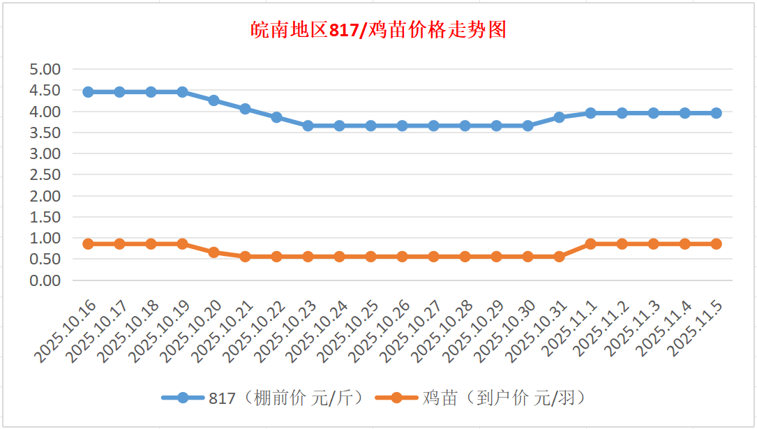 鸡病专业网独家信息:2025年11月5日皖南地区817-麻鸡行情最新走势