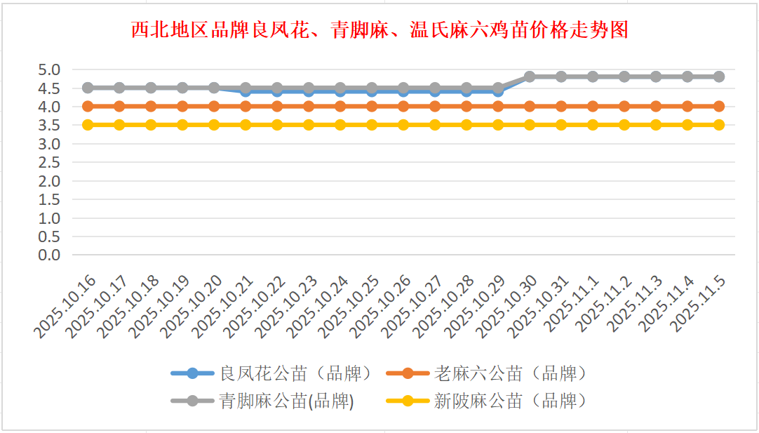 品牌新陂麻:价格稳定,到户价公苗4.50元/羽,稳。
