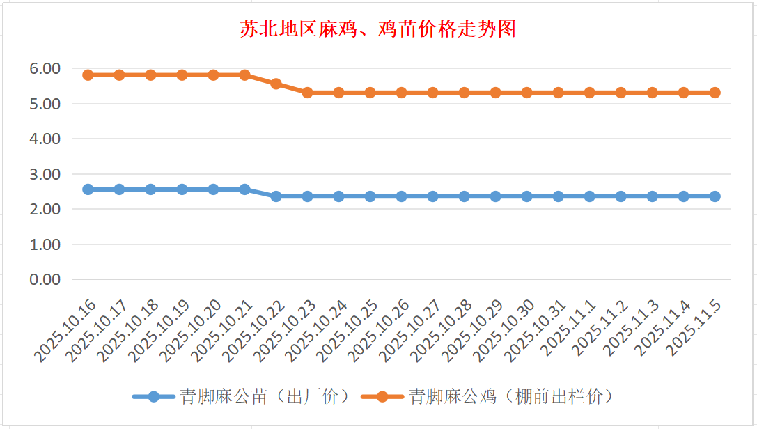 苏北地区麻鸡、鸡苗价格走势图(图源:鸡病专业网)