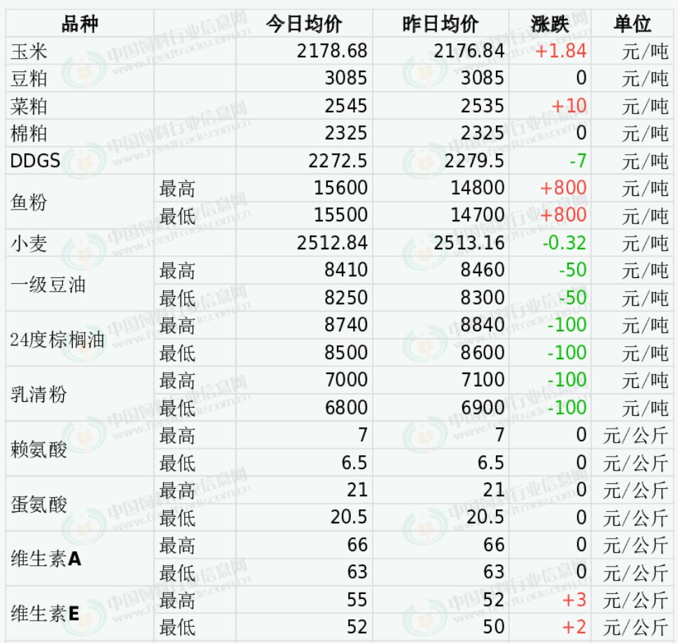 4日DDGS价格小跌。近期北方市场水产养殖退市,生猪养殖利润呈现亏损,下游企业多滚动补库,原粮玉米价格有所下跌,玉米酒精企业陆续恢复开工运行,DDGS现货供应增加,仍利空未来DDGS价格。11月份原料玉米价格总体继续偏弱震荡走势为主,叠加其他强关联植物蛋白粕价格总体偏弱走势的影响,多方因素纠缠博弈,我们预判11月份期间大多数时候DDGS交易价格总体偏弱震荡走势为主的可能性更大,11月份月度均价环比继续下跌的可能性更大。