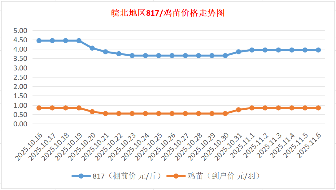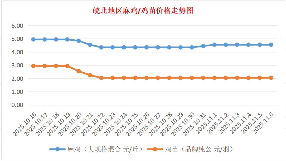 鸡病专业网独家信息:2025年11月6日皖北地区817-麻鸡行情最新走势