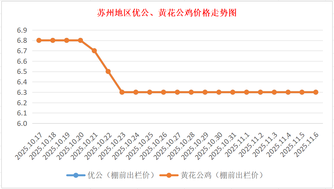 苏州地区优公、黄花公鸡价格走势图(来源:鸡病专业网)