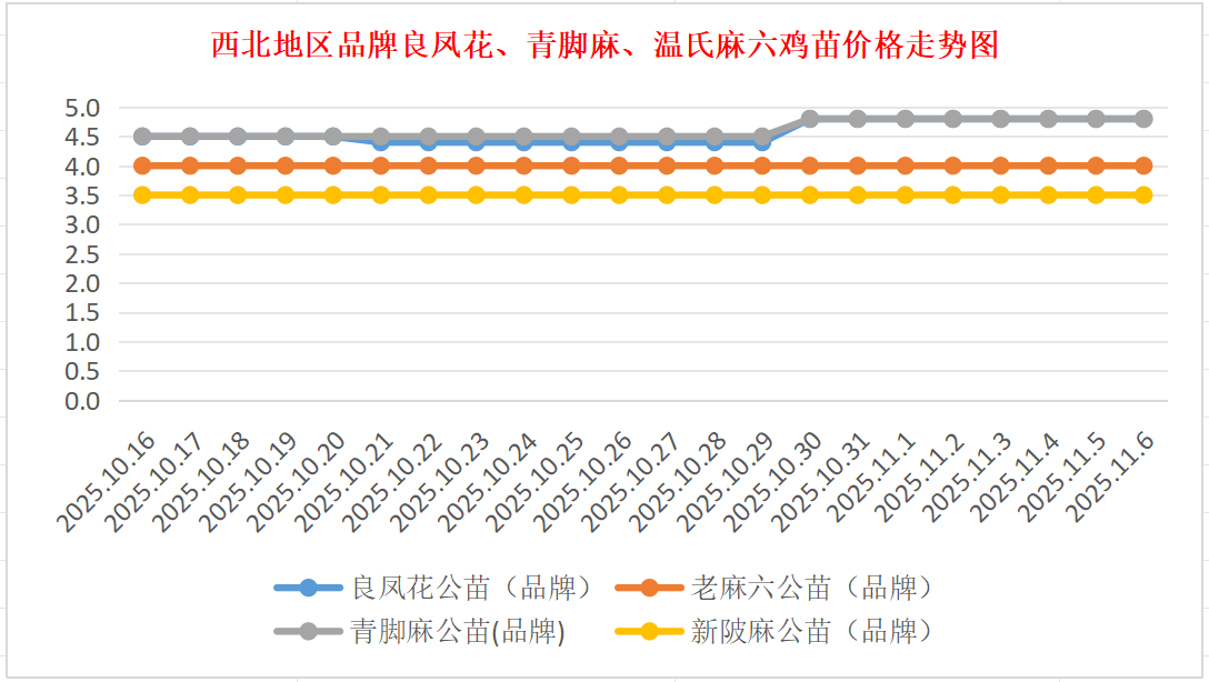 品牌新陂麻:价格稳定,到户价公苗4.50元/羽,稳。