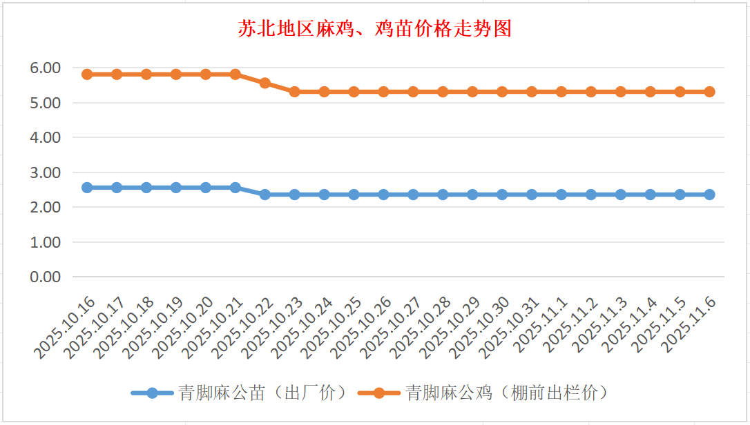 苏北地区麻鸡、鸡苗价格走势图(图源:鸡病专业网)