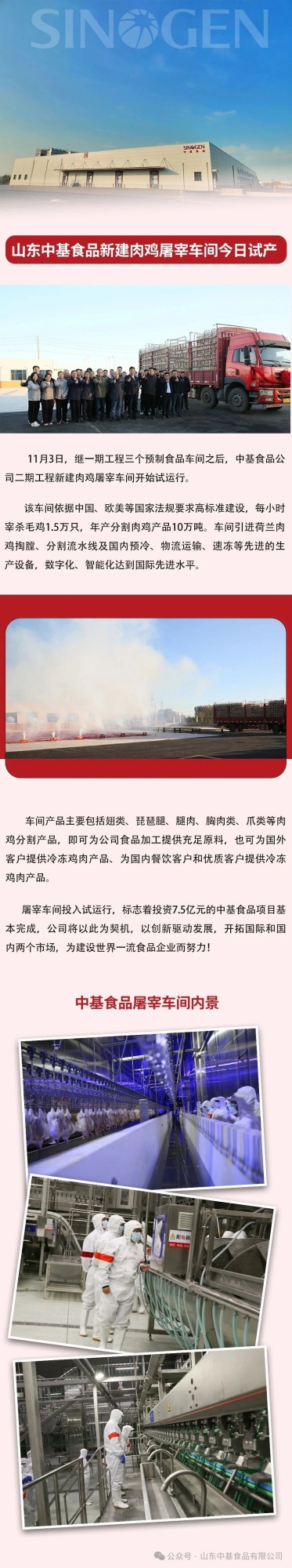 每小时宰杀毛鸡1.5万只!山东中基食品新建肉鸡屠宰车间试产
