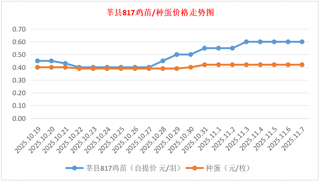 种蛋:昨日种蛋0.41-0.42元/枚。