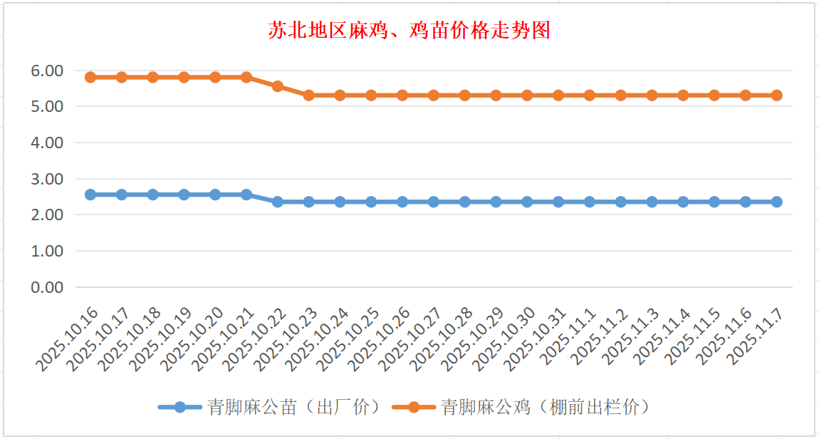 苏北地区麻鸡、鸡苗价格走势图(图源:鸡病专业网)