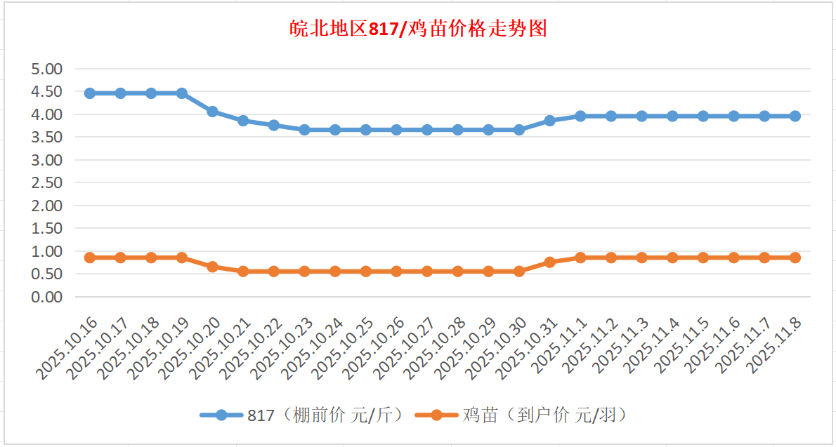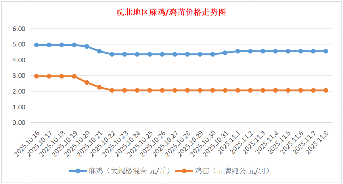 鸡病专业网独家信息:2025年11月8日皖北地区817-麻鸡行情最新走势